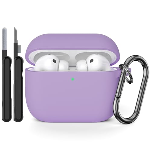 AOTUAO Coque Compatible avec AirPods Pro 3ᵉ Génération avec Kit de Nettoyage, Housse Étui Protection Complète en Silicone Case Cover pour Airpods Pro 3 avec Mousqueton, Light Purple