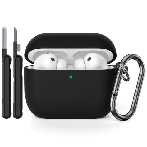 AOTUAO Coque Compatible avec AirPods Pro 3ᵉ Génération avec Kit de Nettoyage, Housse Étui Protection Complète en Silicone Case Cover pour Airpods Pro 3 avec Mousqueton, Noir