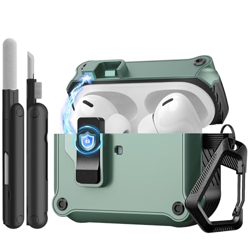 TiMOVO Coque pour Airpods Pro 3 (2025) avec Clip de Verrouillage Sécurisé, Étui Rigide de Protection Intégrale pour Apple AirPod Pro 3e Génération, Crochet d'escalade et Kit de Nettoyage, Vert+Noir
