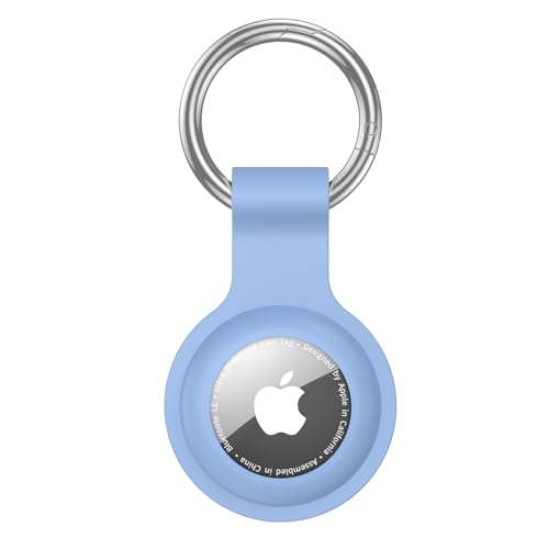Anybase Coque pour Airtag, Coque en Silicone Ultra légère pour Air Tags avec Anneau Porte-clés Anti-Perte - Bleu Clair
