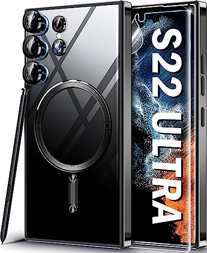 Neivi Coque pour Samsung Galaxy S22 Ultra avec MagSafe Magnétique Protection Caméra [avec Film de Protection] Transparent Anti-Jaune TPU SoupleBumper Antichoc Coque Samsung Galaxy S22 Ultra (Noir)