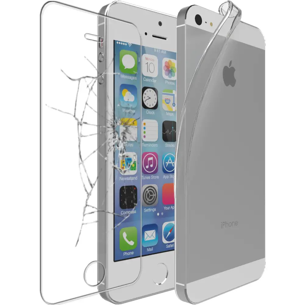 Coque Apple iPhone SE 5S 5 Etui Housse Silicone FINE + VERRE Trempé, Transparent
