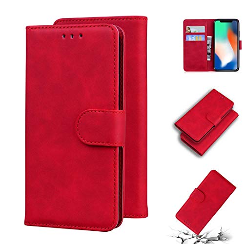 SATURCASE Coque pour Apple iPhone X/XS, Toucher Confortable PU Cuir Magnétique Flip Portefeuille Support Porte-Carte Protecteur Housse Étui pour Apple iPhone X/XS (FG-Rouge)