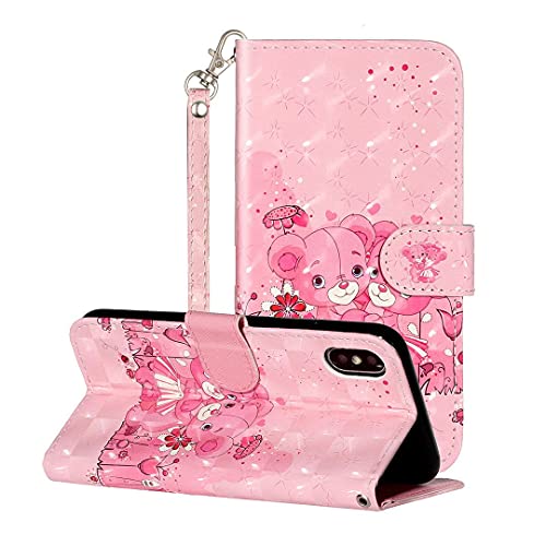 SATURCASE Coque pour Apple iPhone X/XS, Unique Coloré PU Cuir Magnétique Flip Portefeuille Support Porte-Carte Protecteur Housse Étui avec Dragonne pour Apple iPhone X/XS (XC-Rose)