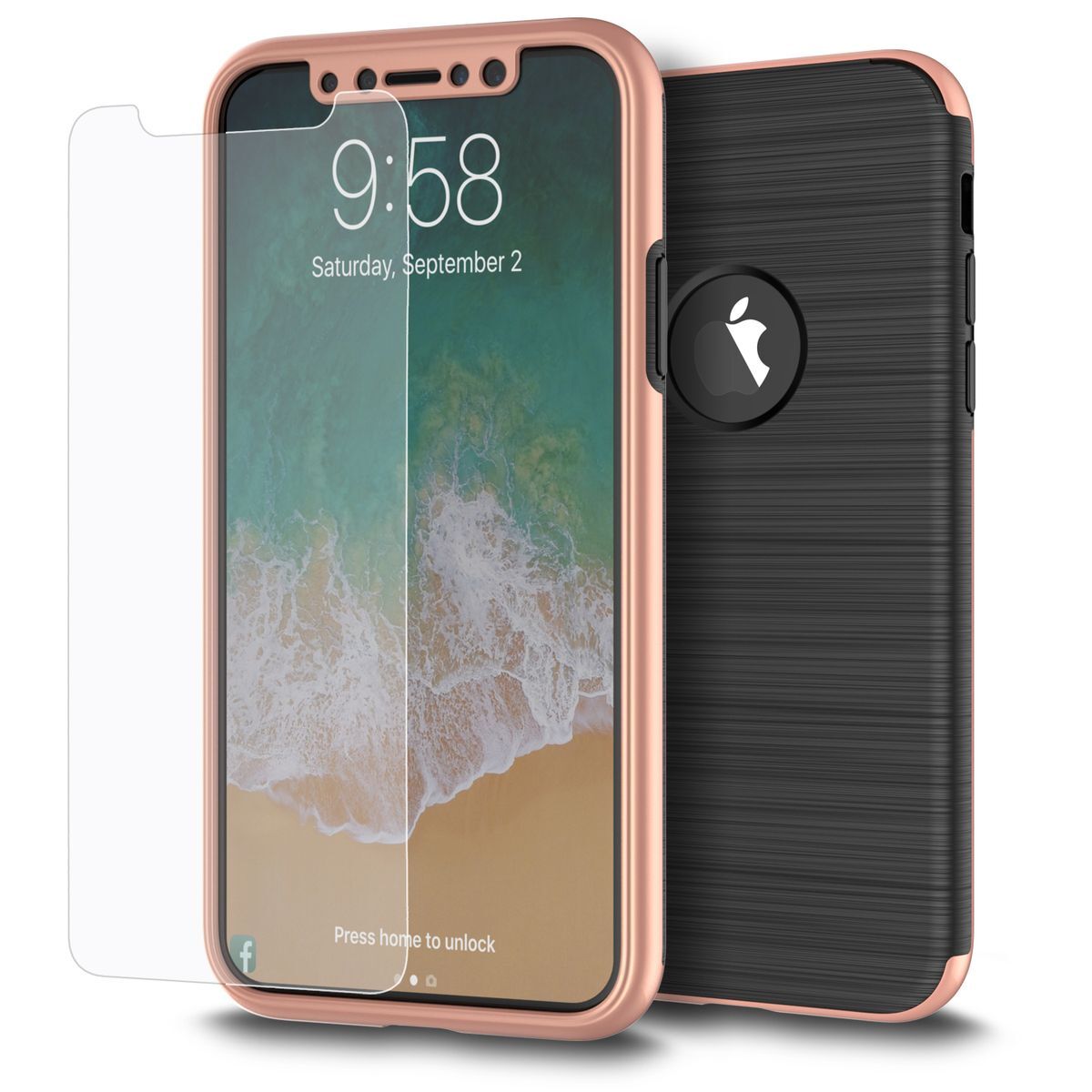 2in1 Film de Verre Protecteur D'Écran Coque pour Apple IPHONE X Xs Étui Fin