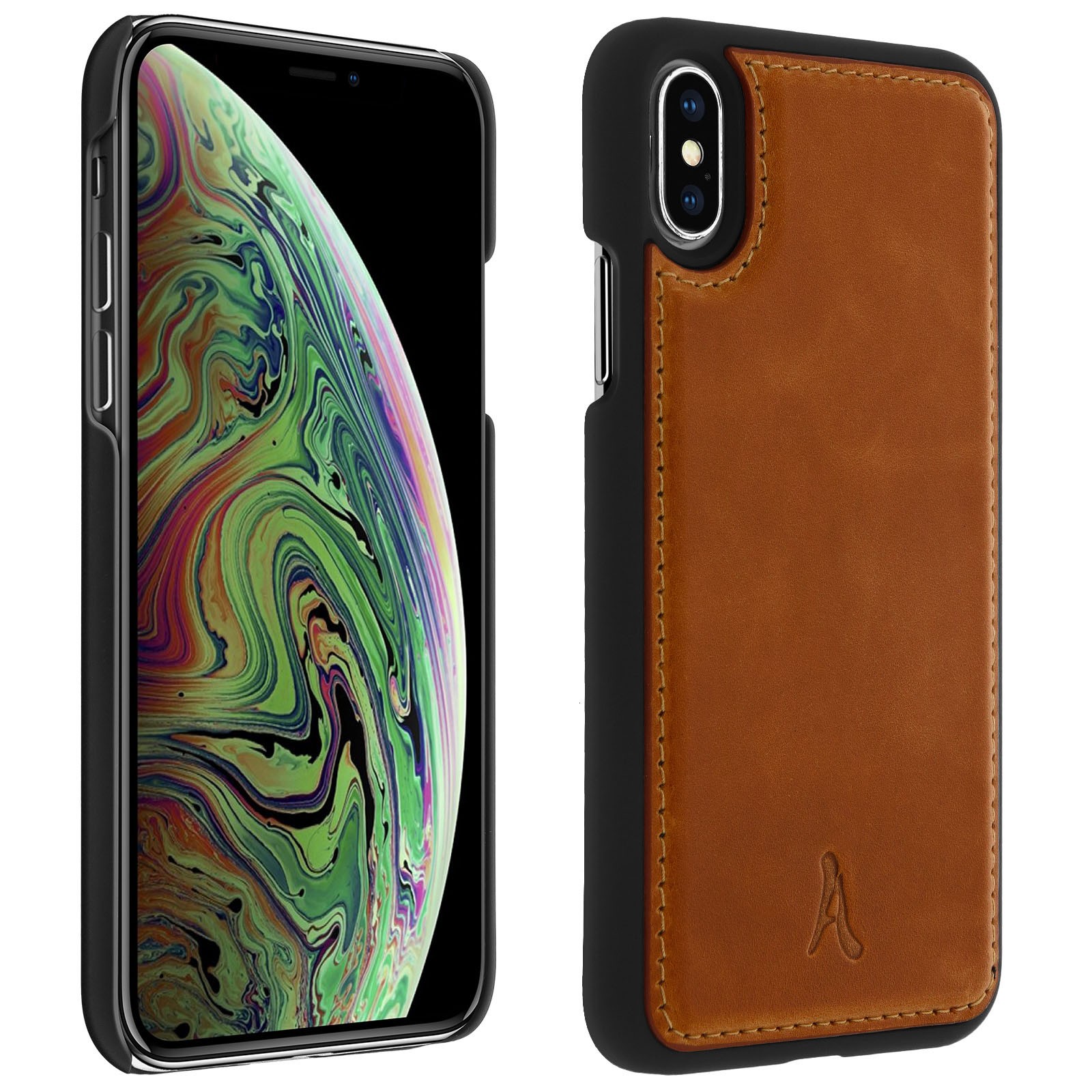 Coque Apple iPhone X / XS Protection Rigide Cuir Véritable Akashi Camel