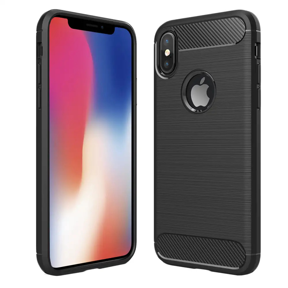 Coque Apple iPhone X XS Etui Gel Housse Motif Fibre Carbone Luxe TPU, Noir