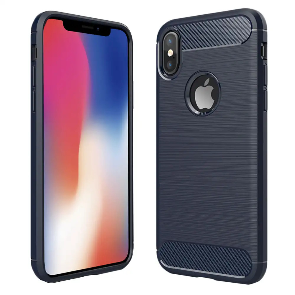 Coque Apple iPhone X XS Etui Gel Housse Motif Fibre Carbone Luxe TPU, Bleu Foncé