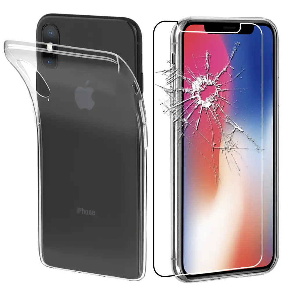 Coque Apple iPhone X XS Etui Housse Silicone FINE + VERRE Trempé, Transparent