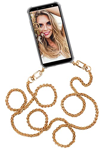 Verco Coque pour Galaxy J6 Plus, Silicone Coque avec Cou Chaîne Collier étui de téléphone pour Samsung Galaxy J6+ Cou Lanière en Corde, Blanc Or