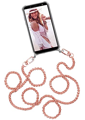 ONEFLOW Chaîne de téléphone portable amovible compatible avec Samsung Galaxy M12 – Coque de protection avec chaîne en métal à porter autour du cou – Or rose