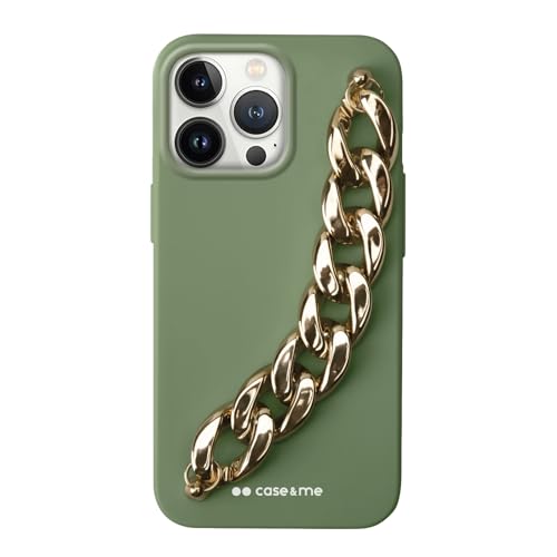 case&me Coque avec poignée à chaîne pour iPhone 12/12 Pro, poignée à chaîne pour Selfie, Vert Pastel