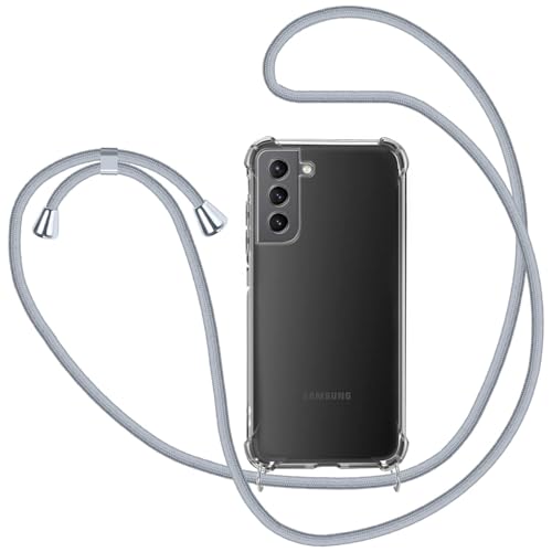 Coque avec Cordon pour Samsung Galaxy S21 5G, Transparent Silicone Collier Réglable Téléphone Étui Portable Lanière Housse, Gris