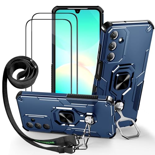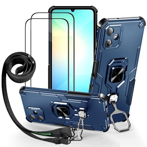 Lonjanfon Outdoor Coque avec Cordon pour Samsung Galaxy A26, Support 360°Rotatif, 2 HD Verre Trempé, Militaire Antichoc Housse Etui pour Samsung A26 5G/4G - Bleu