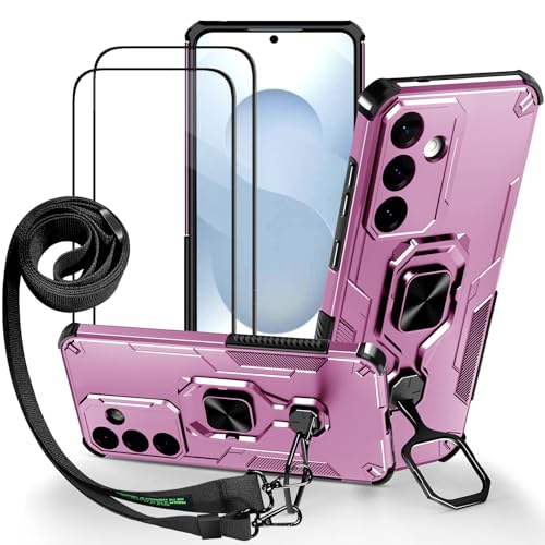 Lonjanfon Outdoor Coque avec Cordon pour Samsung Galaxy S25 FE,Support 360°Rotatif,2 HD Verre Trempé, Militaire Antichoc Housse Etui pour Samsung Galaxy S25 FE 5G/4G - Violet