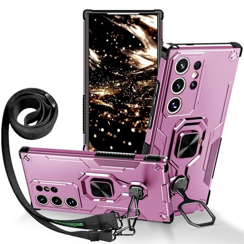 Lonjanfon Outdoor Coque avec Cordon pour Samsung Galaxy S24 Ultra,Support 360°Rotatif, Militaire Antichoc Housse Etui pour Samsung S24 Ultra 5G/4G - Violet