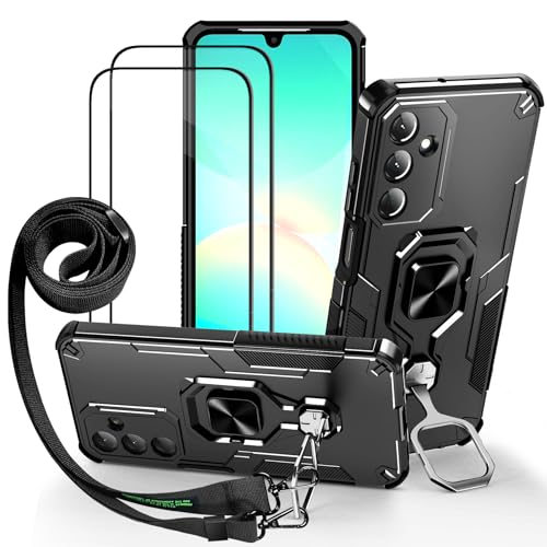 Lonjanfon Outdoor Coque avec Cordon pour Samsung Galaxy A36, Support 360°Rotatif, 2 HD Verre Trempé, Militaire Antichoc Housse Etui pour Samsung A36 5G/4G - Noir