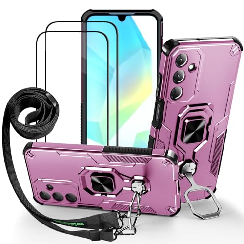 Lonjanfon Outdoor Coque avec Cordon pour Samsung Galaxy A16, Support 360°Rotatif, 2 HD Verre Trempé, Militaire Antichoc Housse Etui pour Samsung A16 5G/4G - Violet