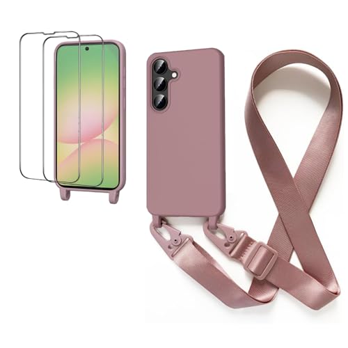 CaseLover Coque avec Cordon pour Samsung Galaxy A55 5G, Coque de Cellulaire Corde Silicone Étui avec 2 Pièces Protections d'écran avec Réglable Collier Téléphone Chaîne Lanyard Case Housse, Pink