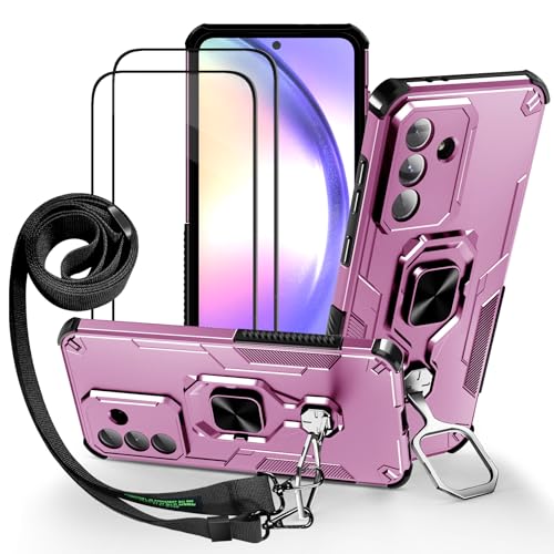 Lonjanfon Outdoor Coque avec Cordon pour Samsung Galaxy A25, Support 360°Rotatif, 2 HD Verre Trempé, Militaire Antichoc Housse Etui pour Samsung A25 5G/4G - Violet