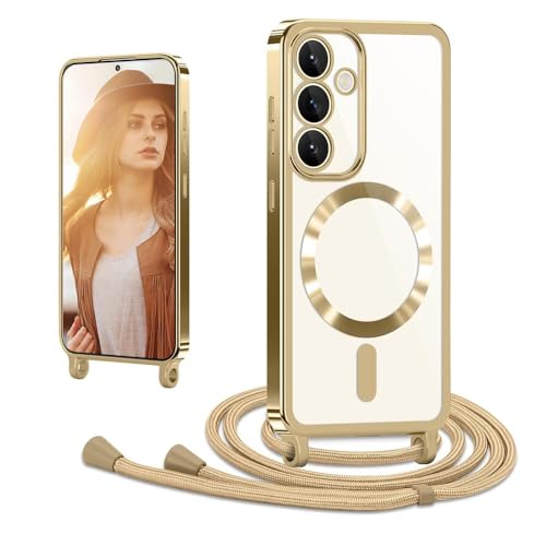 Vaykwo Coque avec Cordon pour Samsung Galaxy S24 6,2'', Coque avec Collier Réglable pour Samsung Galaxy S24 6,2'', Protection Complète Transparente avec Tour de Cou, Or