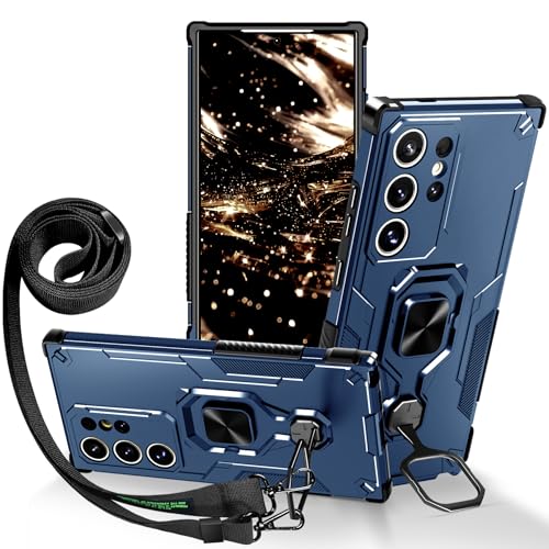 Lonjanfon Outdoor Coque avec Cordon pour Samsung Galaxy S24 Ultra,Support 360°Rotatif, Militaire Antichoc Housse Etui pour Samsung S24 Ultra 5G/4G - Bleu
