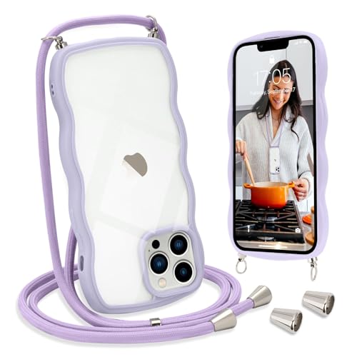 L-FADNUT Chaîne de Téléphone Portable pour iPhone 13 Pro Max Coque avec Lanière Silicone avec Cordon à Porter Autour du Cou Transparent Coque de Protection pour iPhone 13 Pro Max Violet