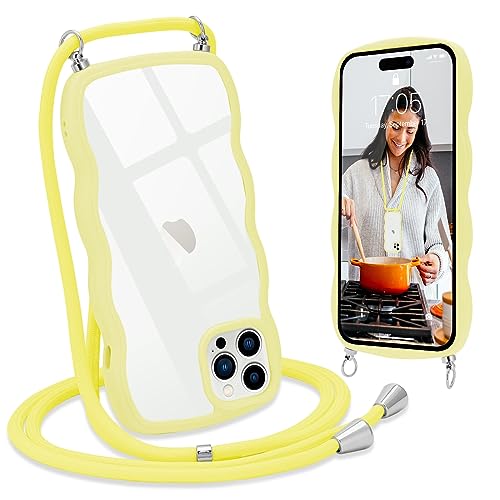 L-FADNUT Chaîne de Téléphone Portable pour iPhone 15 Pro Coque avec Lanière Silicone avec Cordon à Porter Autour du Cou Transparent Coque de Protection pour iPhone 15 Pro Jaune