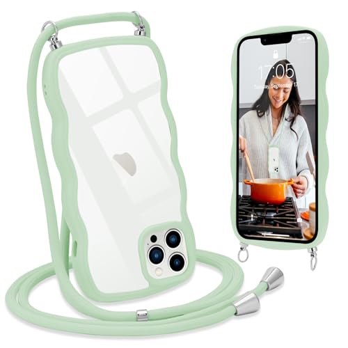 L-FADNUT Chaîne de Téléphone Portable pour iPhone 13 Pro Coque avec Lanière Silicone avec Cordon à Porter Autour du Cou Transparent Coque de Protection pour iPhone 13 Pro Vert