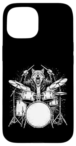 Wolf Drummer Rock Wild Animal Jouant de la Batterie Coque pour iPhone 15