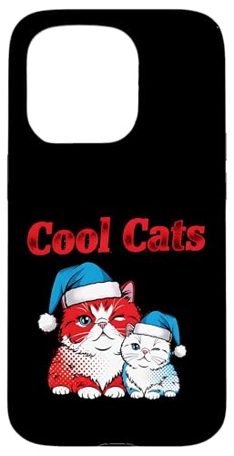Duo de Chats Cool de Noël : mère et bébé Coque pour iPhone 15 Pro Max