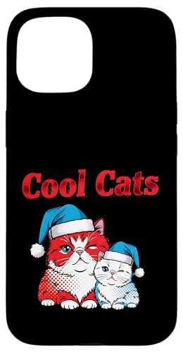 Duo de Chats Cool de Noël : mère et bébé Coque pour iPhone 15
