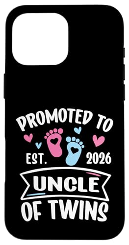 Promu à l'Oncle of Twins Est 2026 Révélation du Sexe de bébé Coque pour iPhone 16 Pro Max