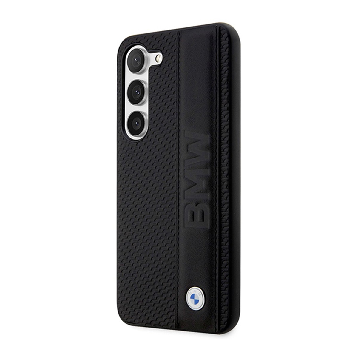 BMW Coque pour Galaxy S23 Plus en Cuir Design Luxueux et Perforé Noir