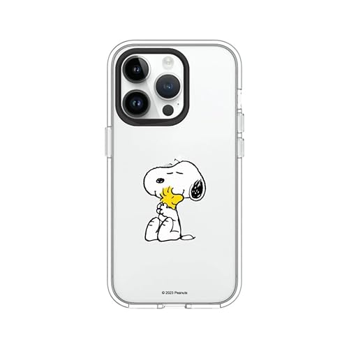 RhinoShield Clear Compatible avec [iPhone 14 Pro] | Résiste au jaunissement, Haute Transparence, Coque de Protection Clear - Noir Contour objectifs Photo [Snoopy/Snoopy & Woodstock - Câlin]