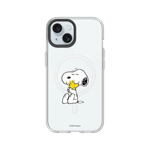 RhinoShield Coque Clear Compatible avec Magsafe pour [iPhone 15] | Force magnétique supérieure, Haute Transparence et résiste au jaunissement. - [Snoopy/Snoopy & Woodstock - Câlin]