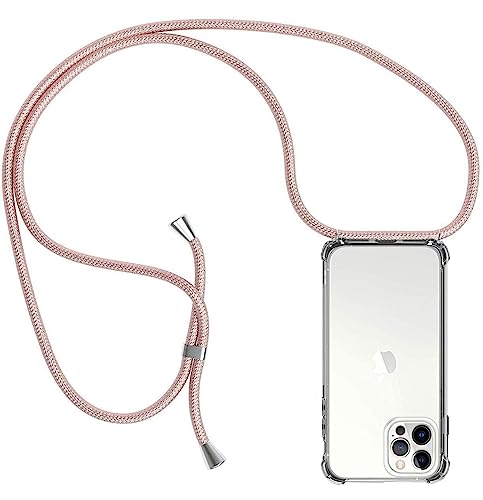 Emlivi Coque pour iPhone 12 Pro avec Cordon de Collier, Coque iPhone 12 Pro Silicone TPU Bumper Cover [Lanière avec Cordon Réglable Longueur Chaîne] Housse pour iPhone 12 Pro Case, Rose Sable