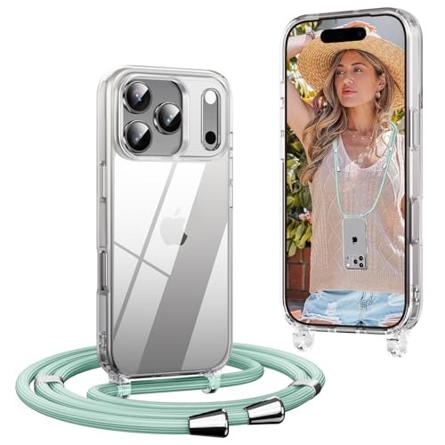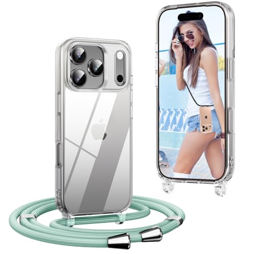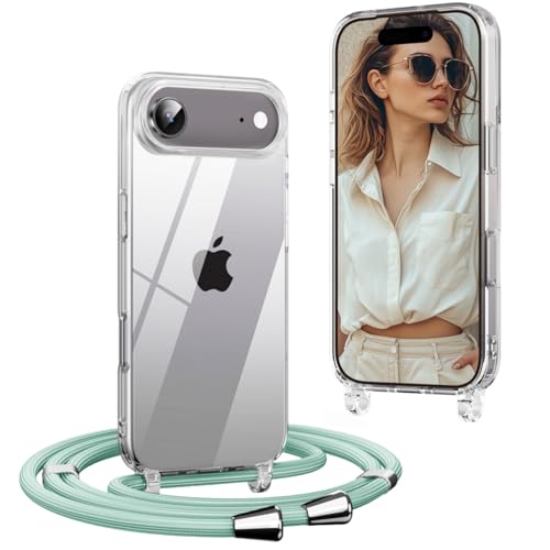 OLEPHY Coque avec Cordon pour iPhone 17 Pro 6,3'', Coque avec Collier Ajustable, [Antichoc] [Anti-Rayures] Cover avec Tour de Cou, Vert Matcha