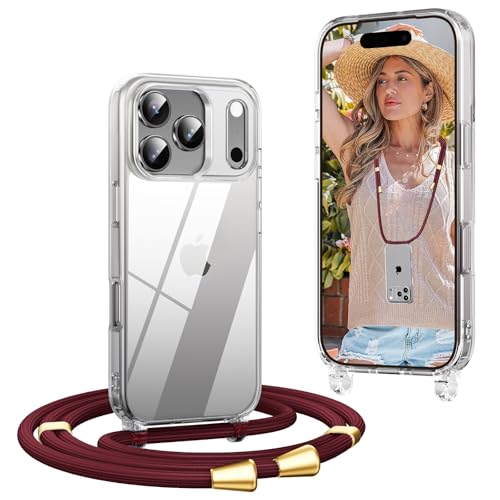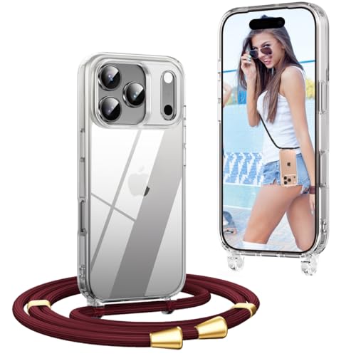 OLEPHY Coque avec Cordon pour iPhone 17 Pro Max 6,9'', Coque avec Collier Ajustable, [Antichoc] [Anti-Rayures] Cover avec Tour de Cou, Vin Rouge