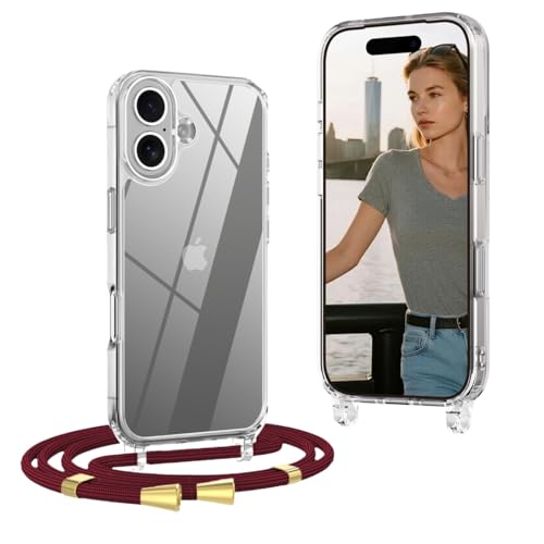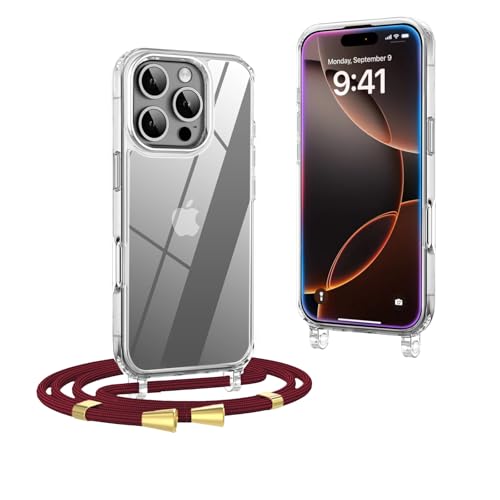 OLEPHY Coque avec Cordon pour iPhone 16 Pro 6,3'', Coque avec Collier Ajustable, [Antichoc] [Anti-Rayures] Cover avec Tour de Cou, Vin Rouge