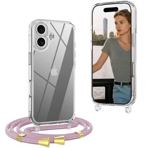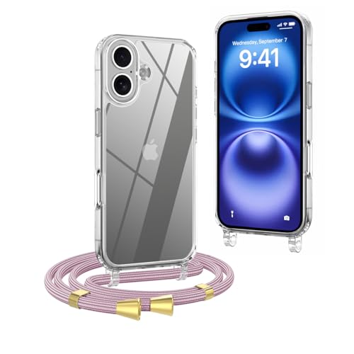 OLEPHY Coque avec Cordon pour iPhone 16 6,1'', Coque avec Collier Ajustable, [Antichoc] [Anti-Rayures] Cover avec Tour de Cou, Or Rose