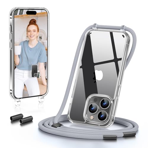 GOODVISH Coque pour iPhone 14 Pro Max 6,7 Pouces avec Cordon de Collier, Coque Transparente TPU Bumper Etui Housse avec Cordon Réglable Téléphone Lanyard Case Collier 14 Pro Max Cover, Gris Argent