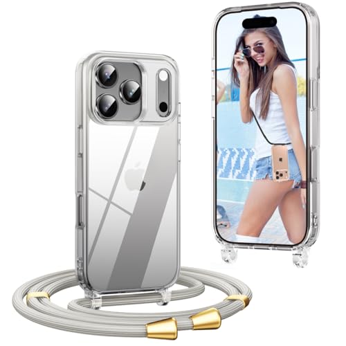 OLEPHY Coque avec Cordon pour iPhone 17 Pro 6,3'', Coque avec Collier Ajustable, [Antichoc] [Anti-Rayures] Cover avec Tour de Cou, Beige