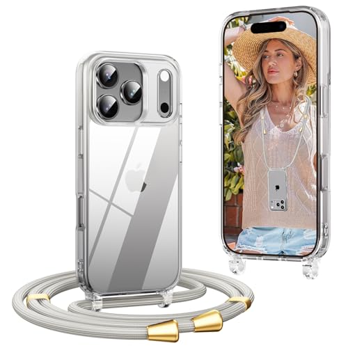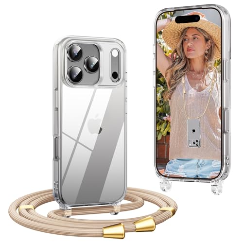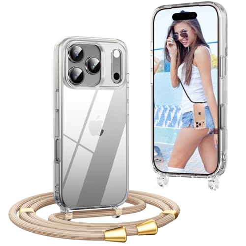 OLEPHY Coque avec Cordon pour iPhone 17 Pro Max 6,9'', Coque avec Collier Ajustable, [Antichoc] [Anti-Rayures] Cover avec Tour de Cou, Beige