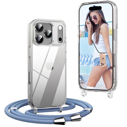 OLEPHY Coque avec Cordon pour iPhone 17 Pro Max 6,9'', Coque avec Collier Ajustable, [Antichoc] [Anti-Rayures] Cover avec Tour de Cou, Bleu