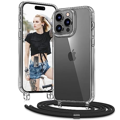 OLEPHY Coque avec Cordon pour iPhone 15 Pro 6,1'', Coque avec Collier Ajustable, [Antichoc] [Anti-Rayures] Cover avec Tour de Cou, Noir