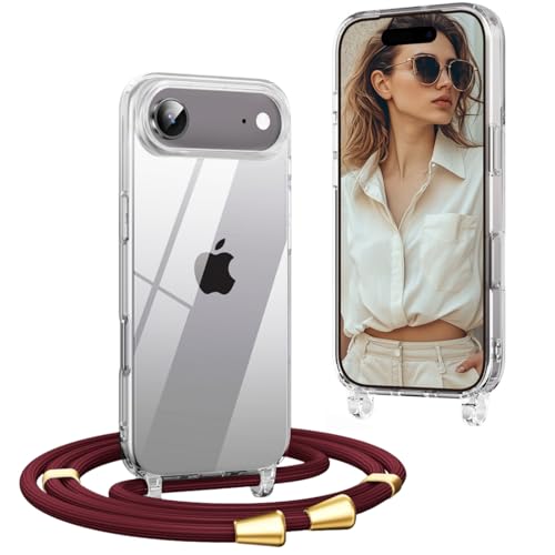 OLEPHY Coque avec Cordon pour iPhone 17 6,3'', Coque avec Collier Ajustable, [Antichoc] [Anti-Rayures] Cover avec Tour de Cou, Vin Rouge