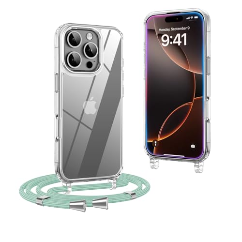 OLEPHY Coque avec Cordon pour iPhone 16 Pro 6,3'', Coque avec Collier Ajustable, [Antichoc] [Anti-Rayures] Cover avec Tour de Cou, Vert Matcha
