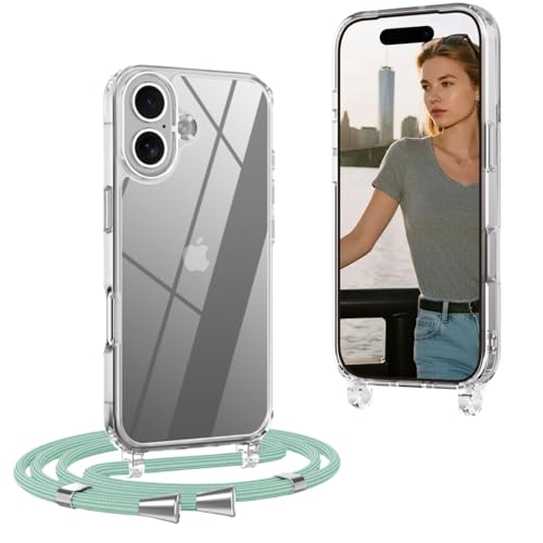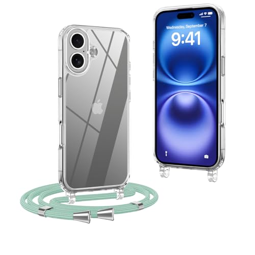 OLEPHY Coque avec Cordon pour iPhone 16 6,1'', Coque avec Collier Ajustable, [Antichoc] [Anti-Rayures] Cover avec Tour de Cou, Vert Matcha