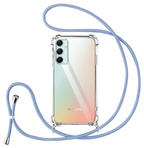 Vauki Collier Coque pour Samsung Galaxy A34 5G avec Cordon, Transparent Silicone Protection Étui Housse Lanyard avec Sangle Réglable Chaîne Case pour Samsung A34 5G, Lilas
